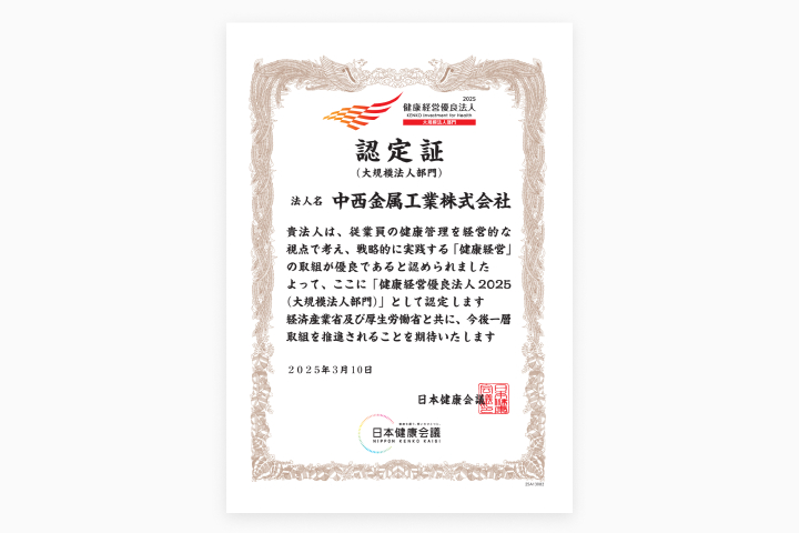Certified in the Large Enterprise Category, 2025 Outstanding Organization of KENKO Investment for Health